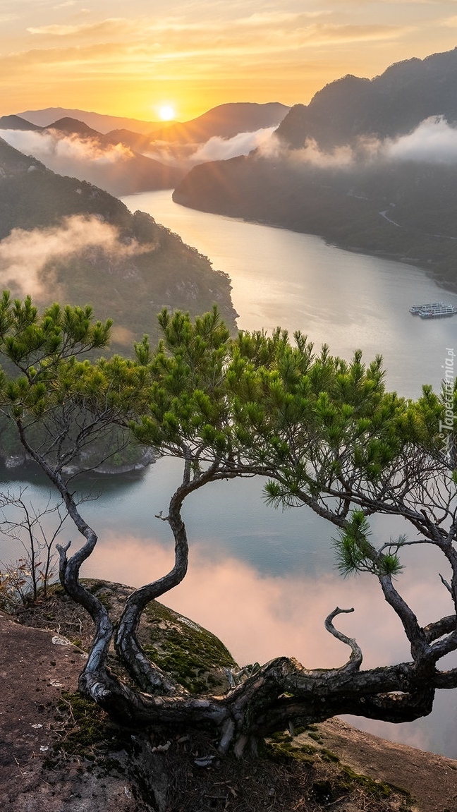 Edytor tapety: Sosna na skale o wschodzie słońca