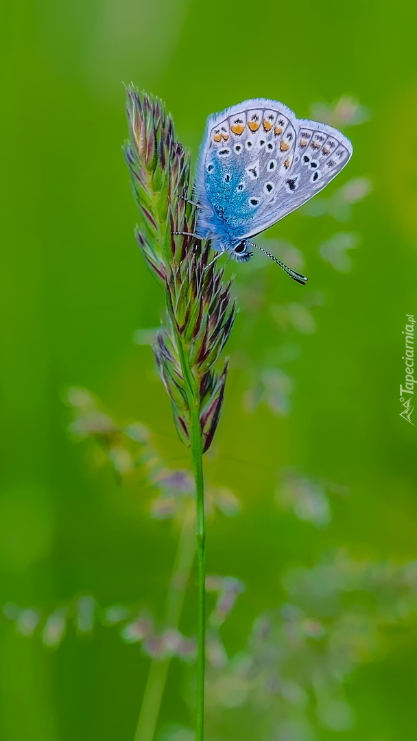 Edytor tapety: Modraszek ikar na źdźble trawy