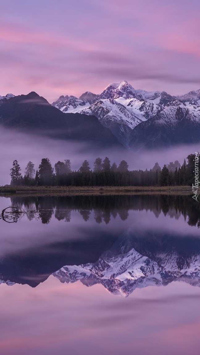 Edytor tapety: Widok na zamglone góry Cooka