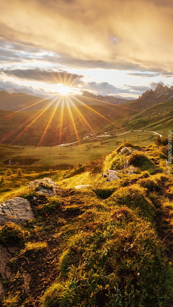 Edytor tapety: Zachód słońca nad górami