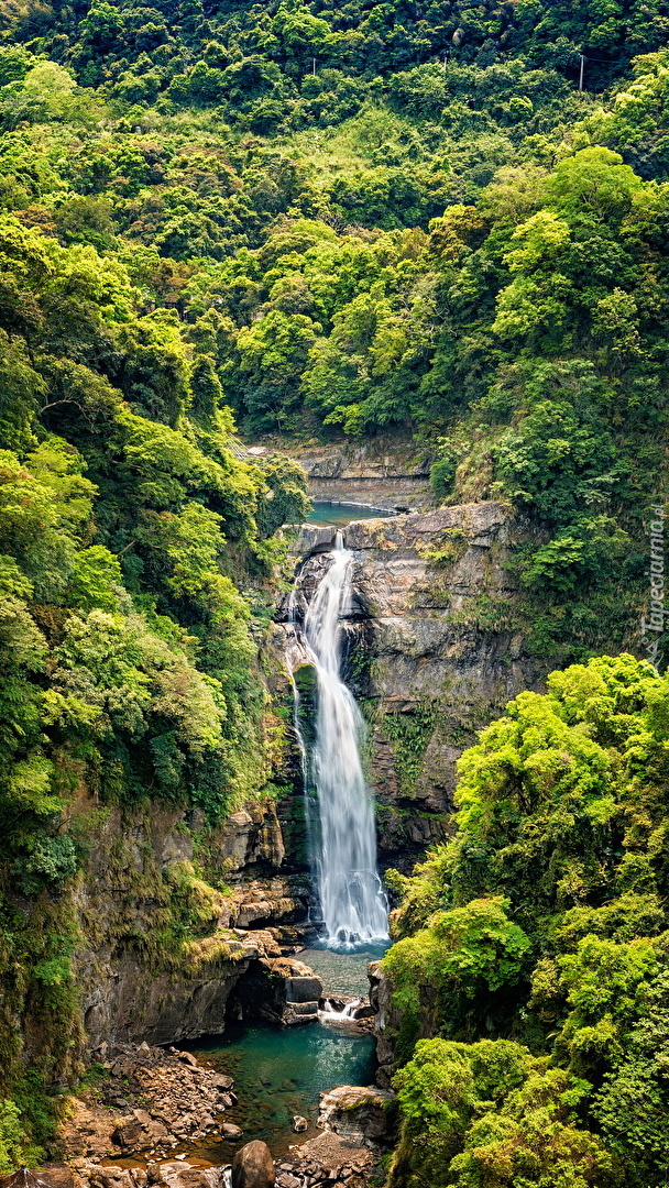 Edytor tapety: Skalny wodospad w lesie