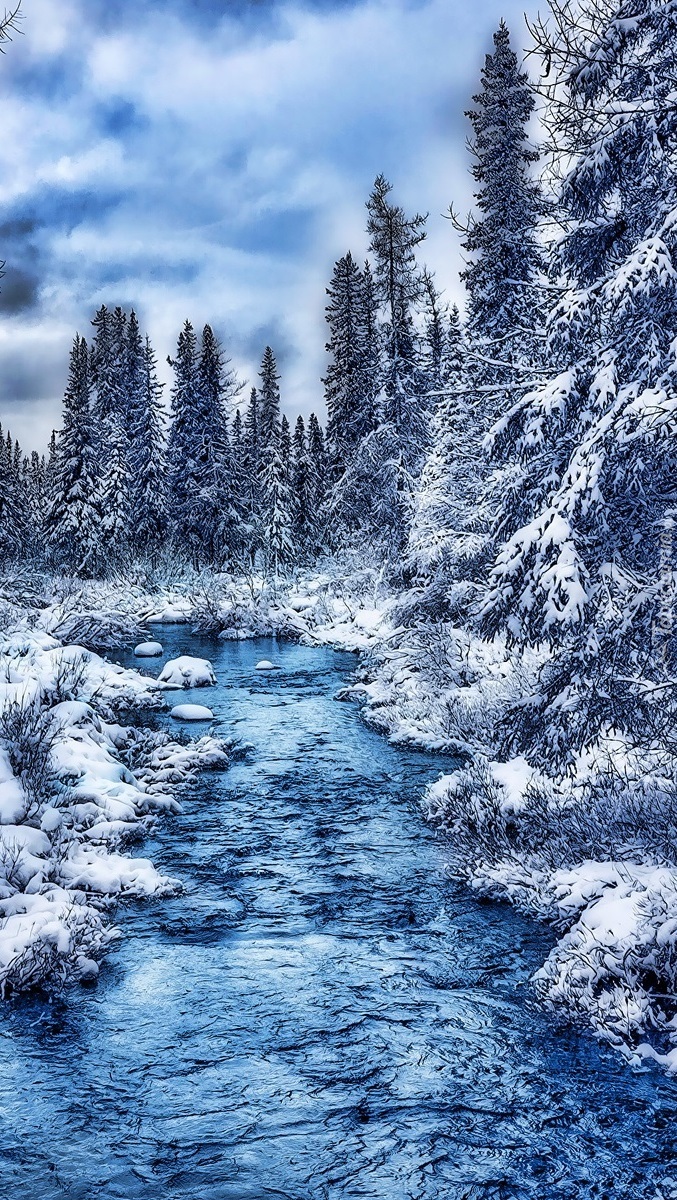 Edytor tapety: Ośnieżone drzewa nad rzeką