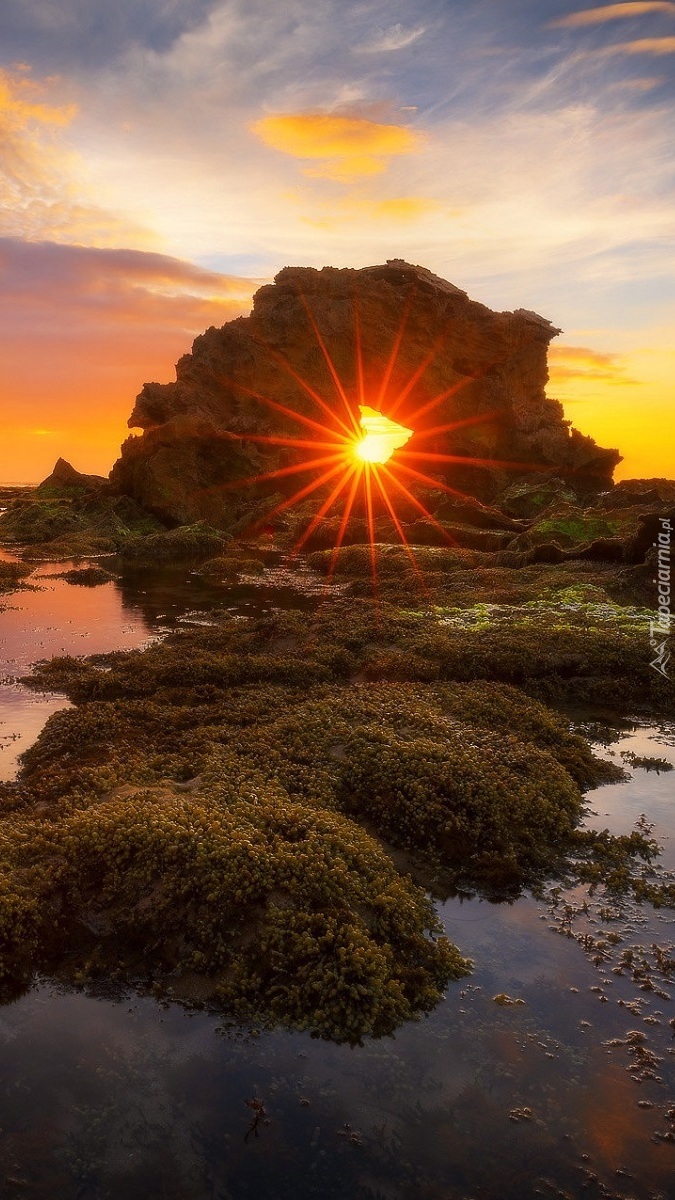 Edytor tapety: Skały w promieniach zachodzącego słońca