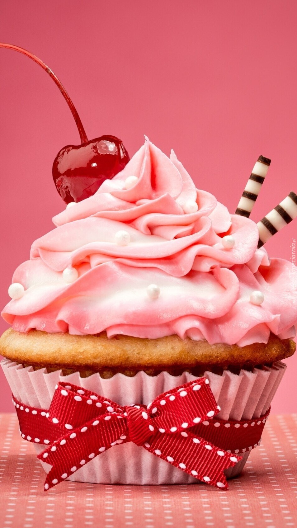 Edytor tapety: Babeczka z kremem i wiśnią