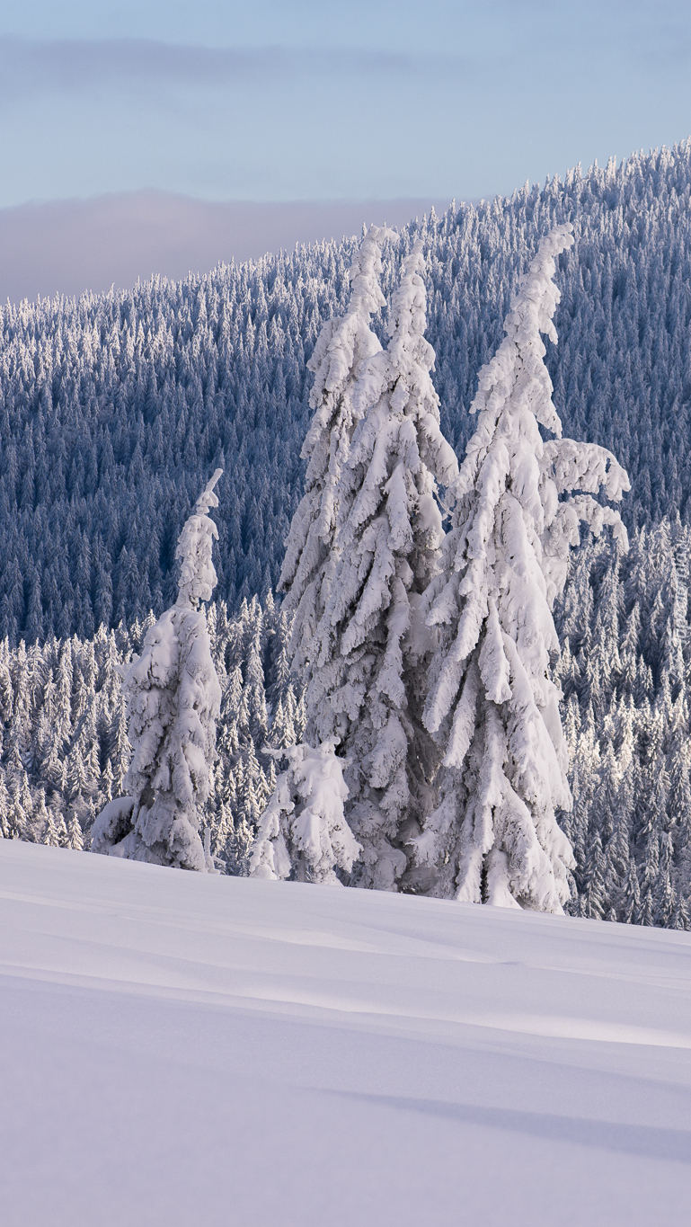 Edytor tapety: Ośnieżone drzewa w górach