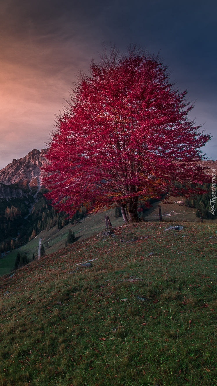 Edytor tapety: Drzewo z czerwonymi liśćmi