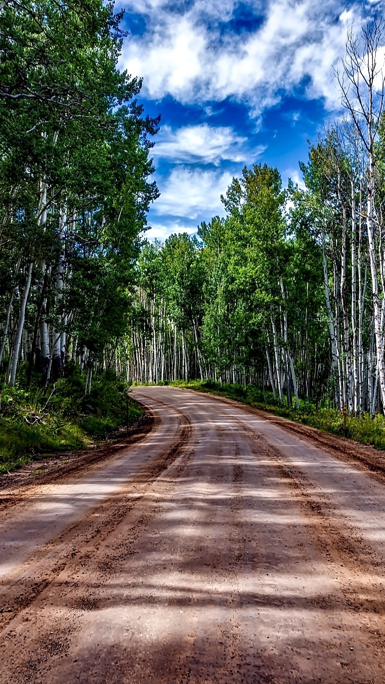 Edytor tapety: Droga przez brzozowy las