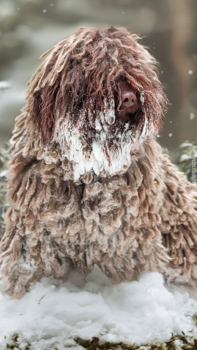 Edytor tapety: Brązowy puli w śniegu