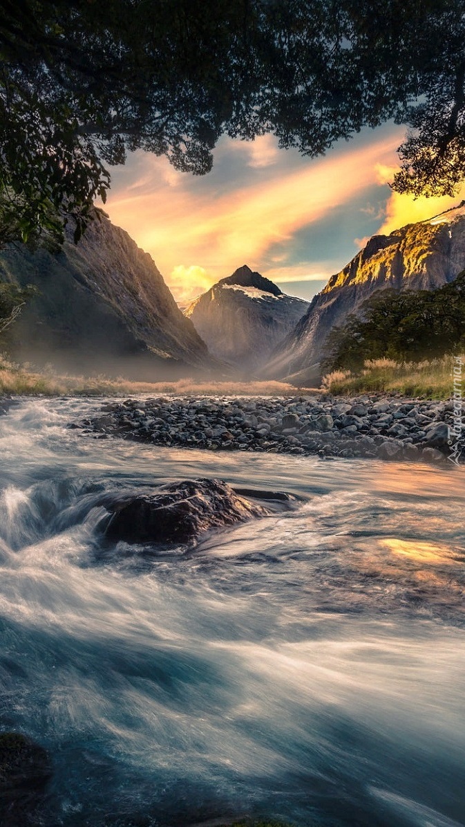 Edytor tapety: Rwąca rzeka w górach