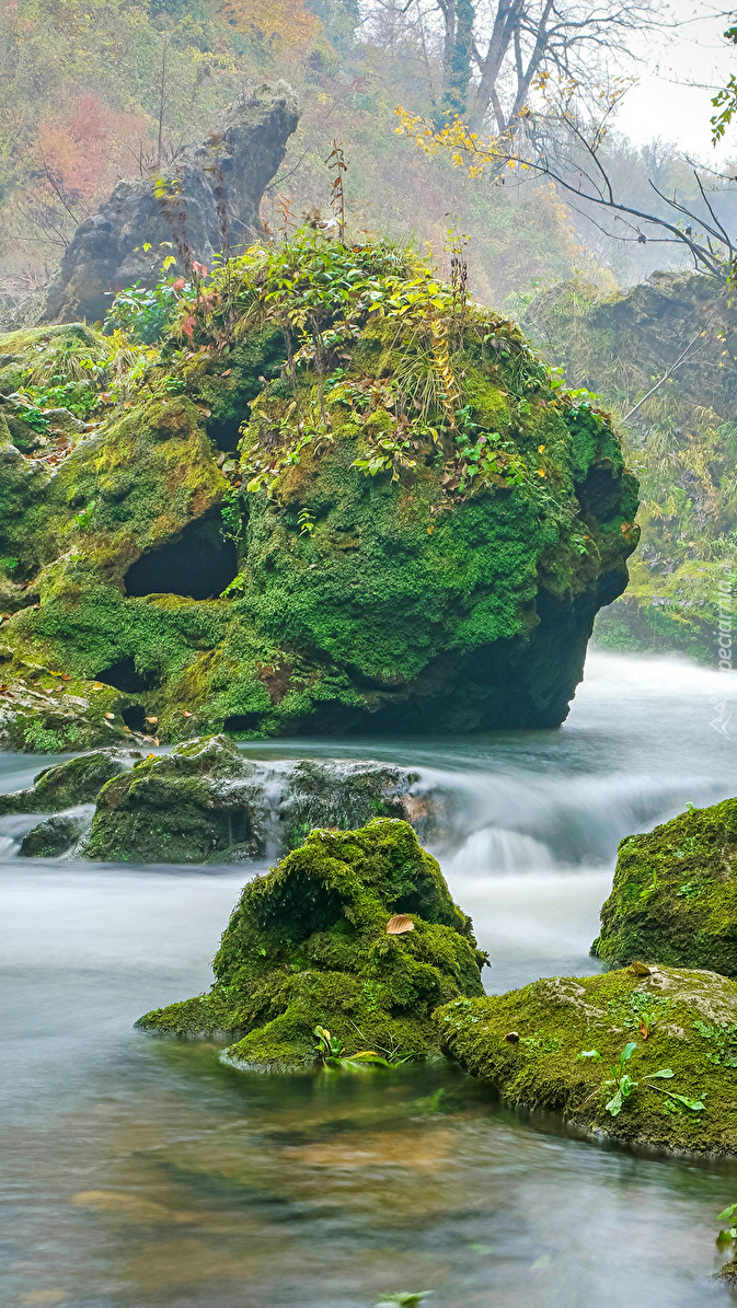 Edytor tapety: Omszałe skały w rzece Korana