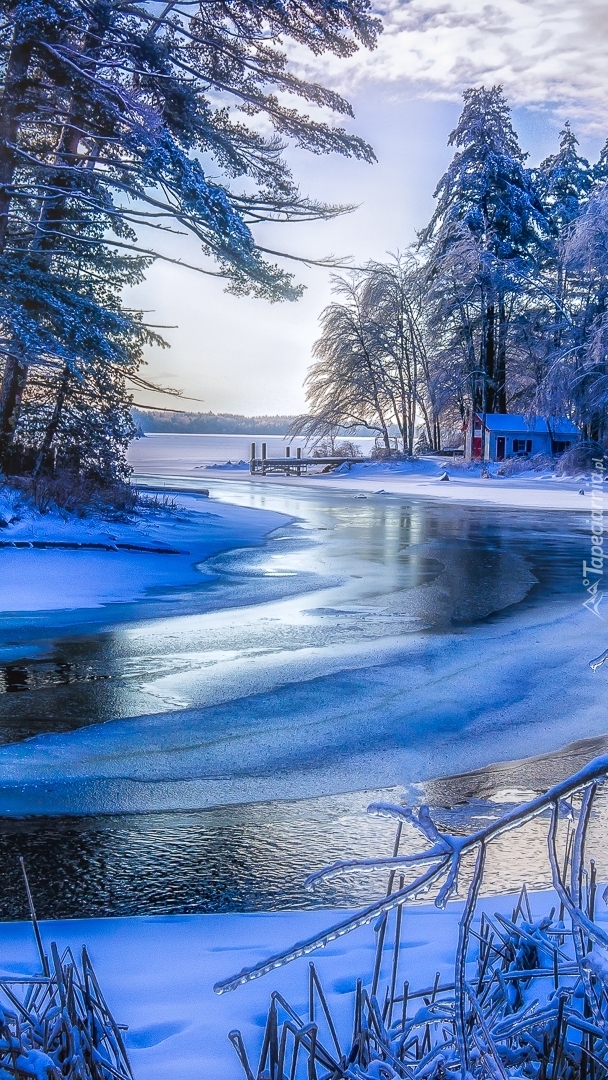 Edytor tapety: Ośnieżone drzewa nad rzeką