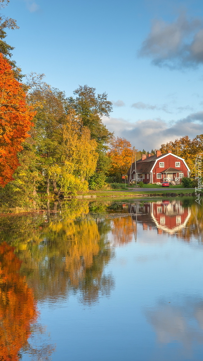 Edytor tapety: Czerwony dom nad jeziorem
