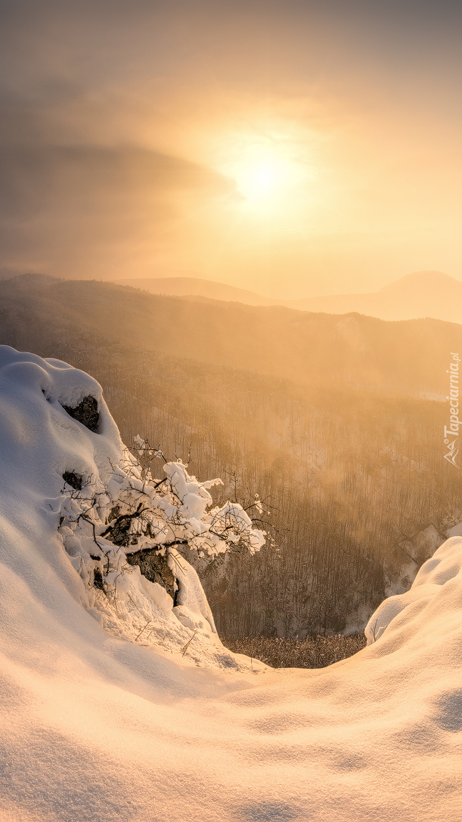 Edytor tapety: Wschód słońca nad zamglonymi górami