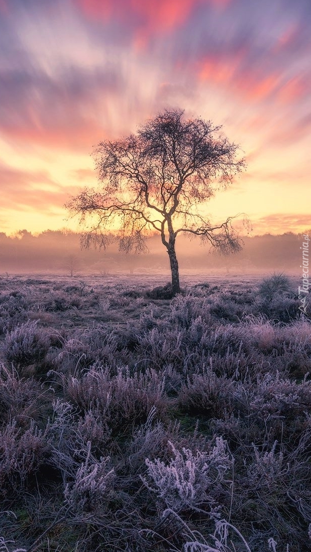 Edytor tapety: Drzewo na oszronionym wrzosowisku