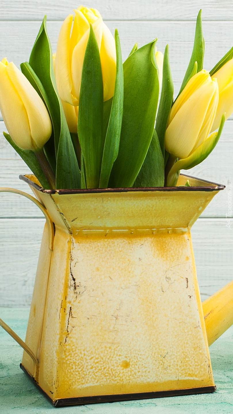 Edytor tapety: Żółte tulipany w konewce