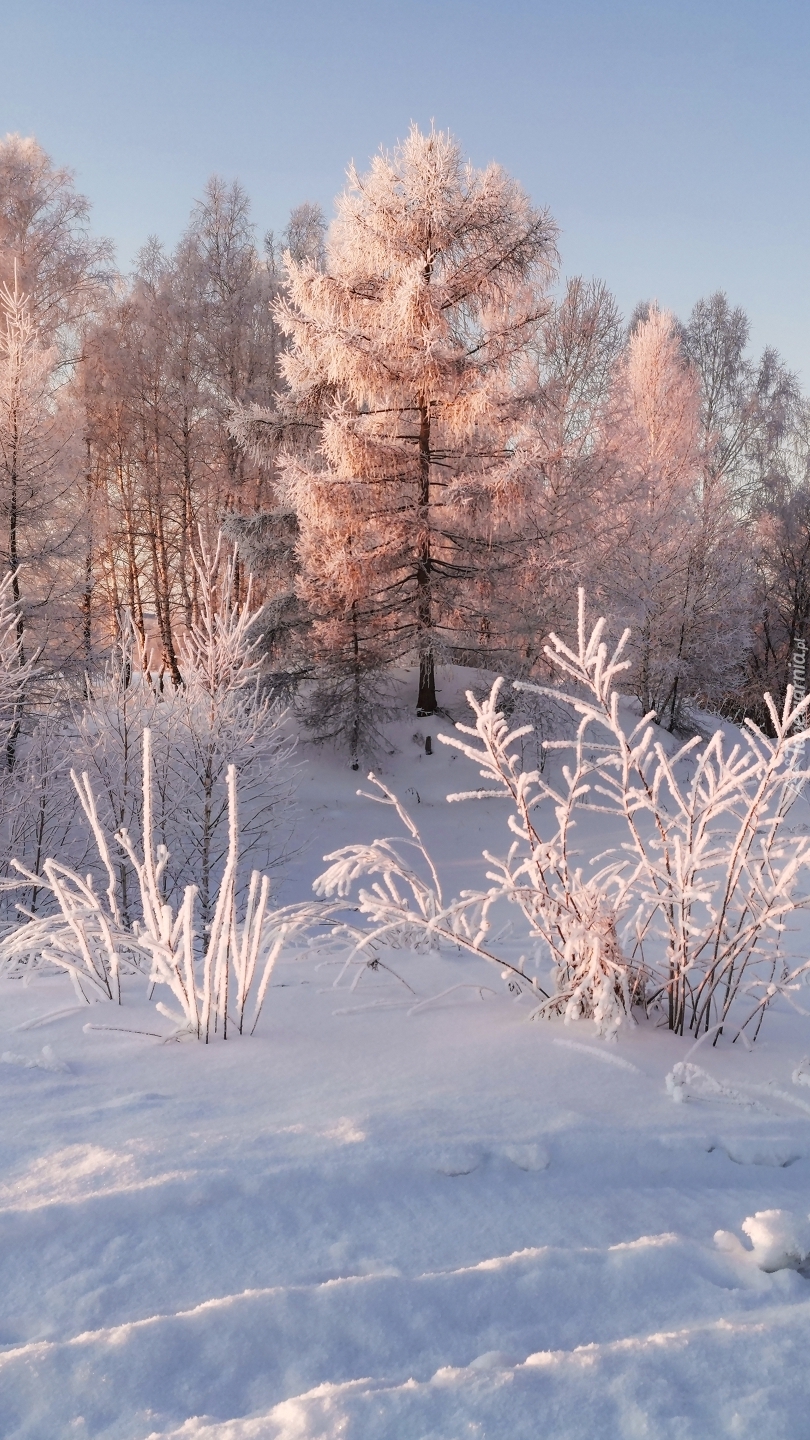 Edytor tapety: Ośnieżone drzewa i krzewy