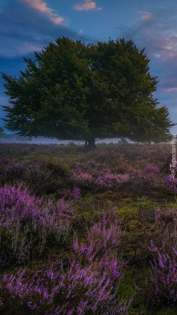 Edytor tapety: Zielone drzewo na wrzosowisku