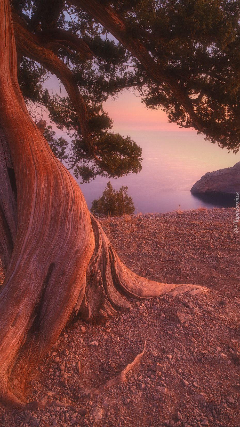 Edytor tapety: Widok spod drzewa na morze
