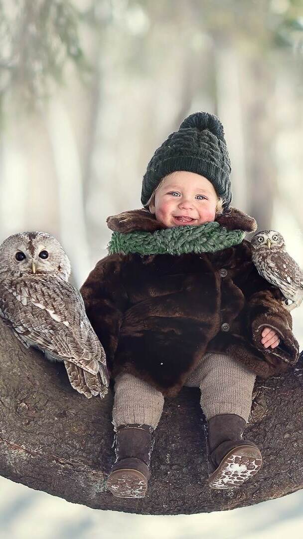 Edytor tapety: Dziecko z puszczykiem i pójdźką