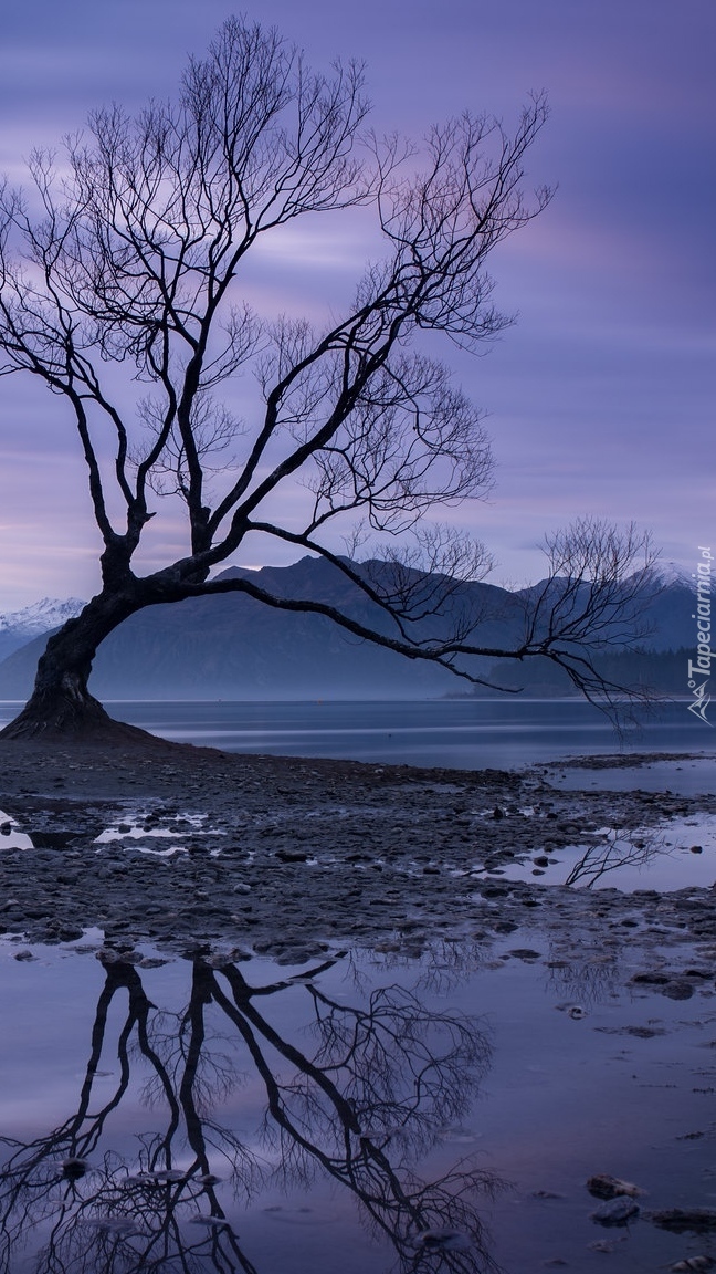 Edytor tapety: Drzewo na jeziorze Wanaka