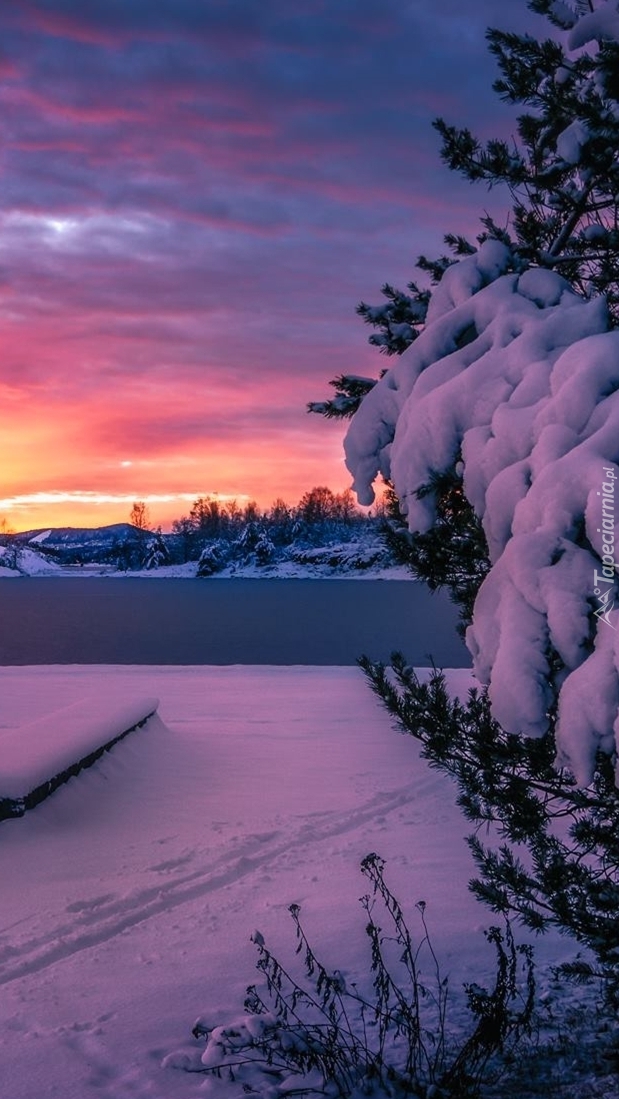 Edytor tapety: Śnieg na gałęziach drzewa