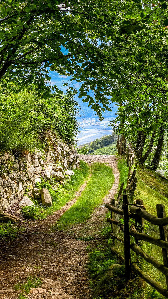 Edytor tapety: Droga wzdłuż kamiennego muru