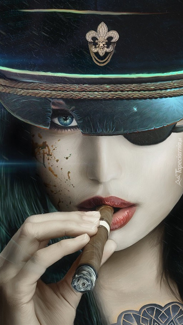 Edytor tapety: Dziewczyna w czapce z cygarem