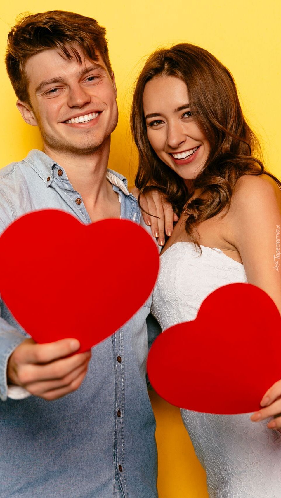 Edytor tapety: Para z czerwonymi sercami w dłoniach