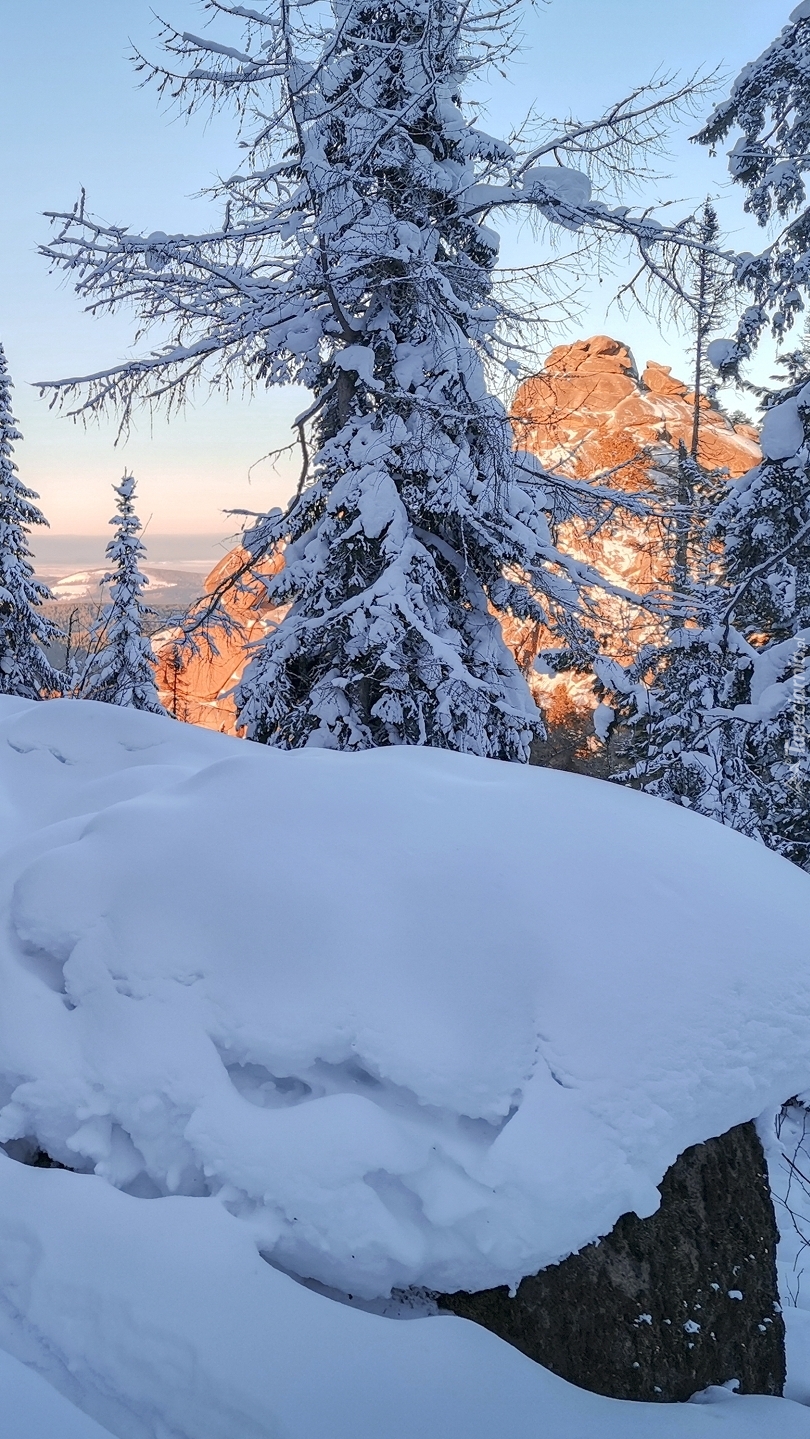 Edytor tapety: Zasypane śniegiem drzewa