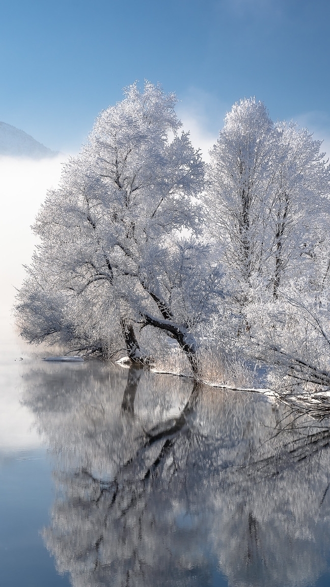 Edytor tapety: Oszronione drzewa nad rzeką