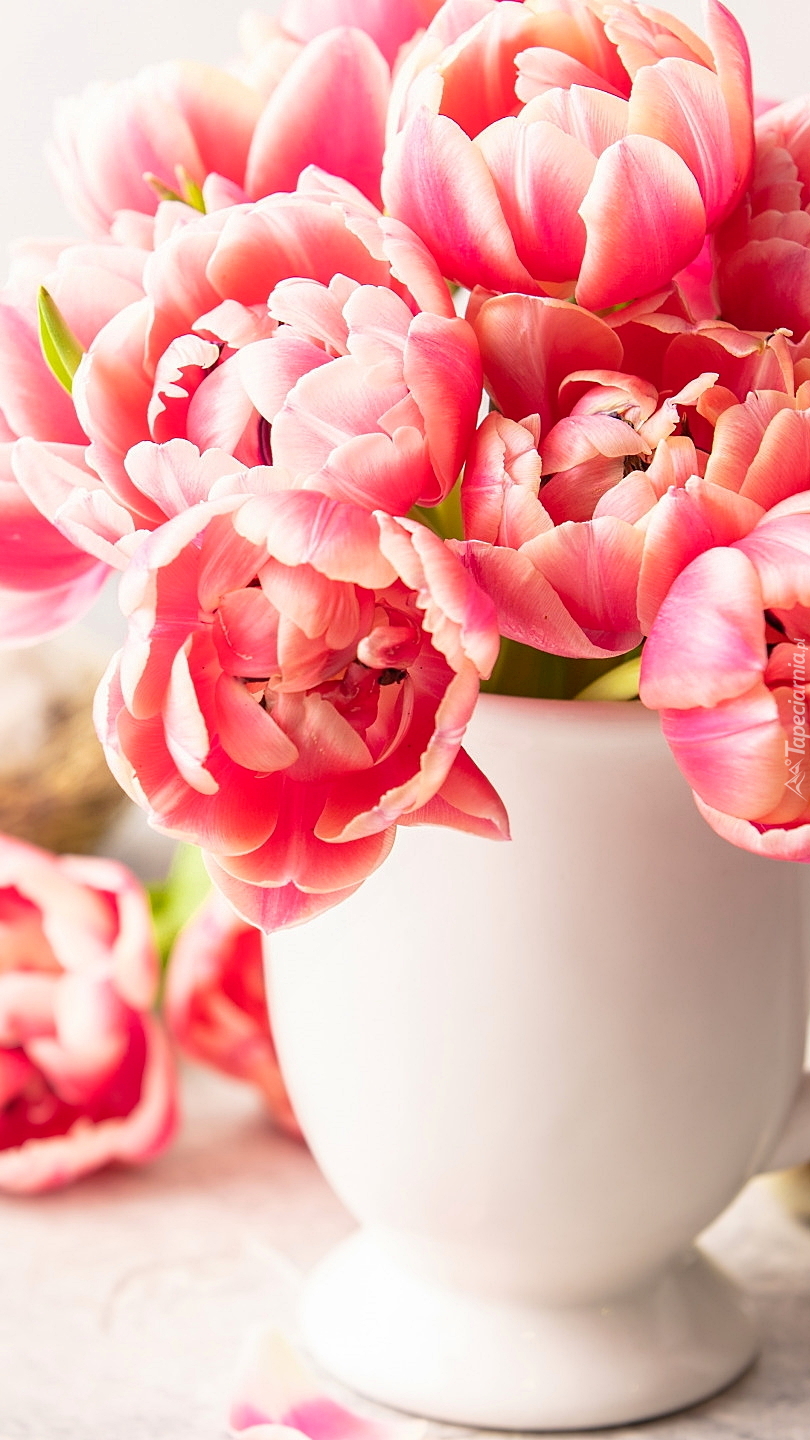 Edytor tapety: Tulipany w białym kubku