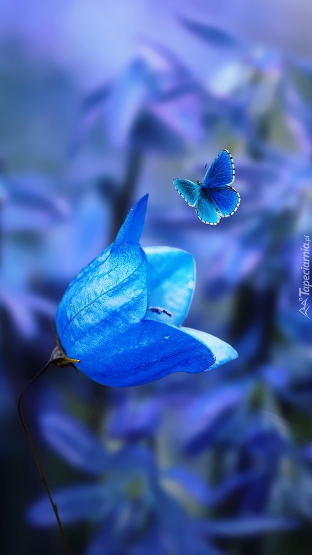 Edytor tapety: Motyl nad niebieskim dzwonkiem