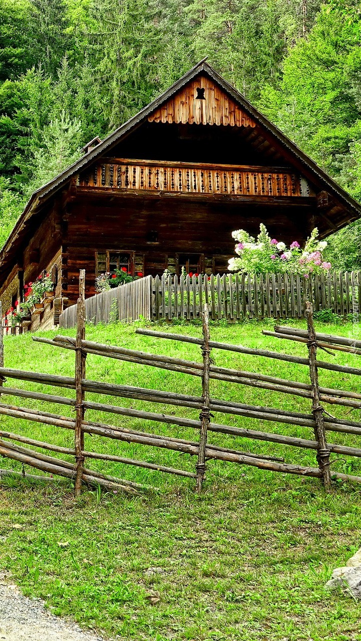 Edytor tapety: Drewniany dom pod lasem