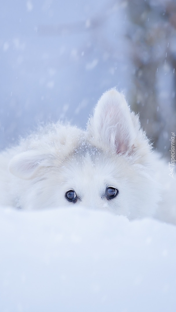 Edytor tapety: Biały owczarek szwajcarski w śniegu