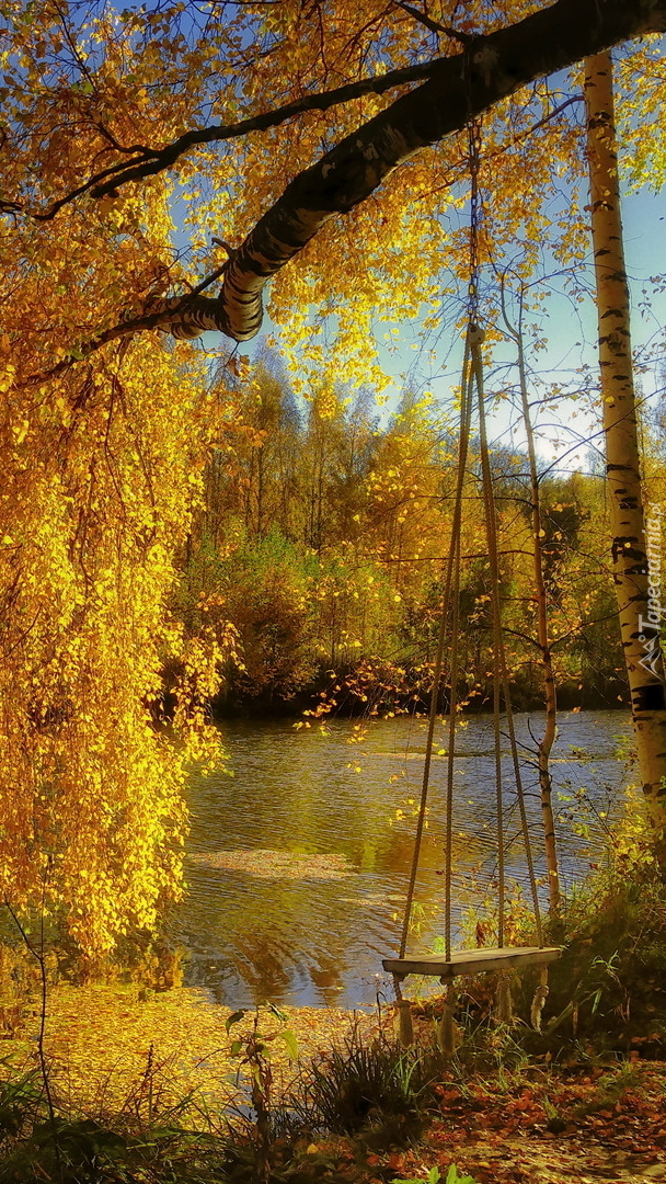Edytor tapety: Huśtawka na jesiennej brzozie