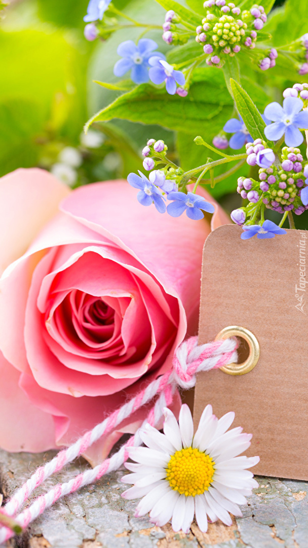 Edytor tapety: Stokrotka obok róży