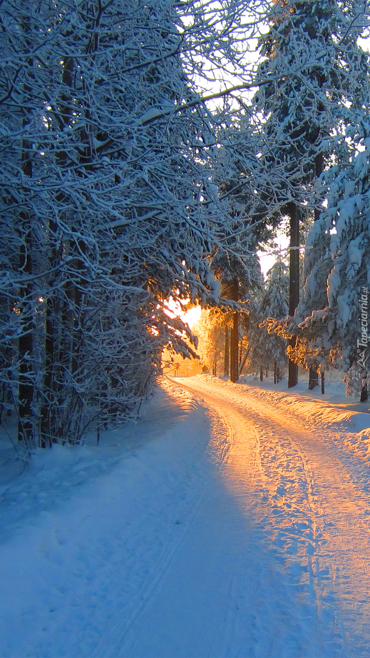 Edytor tapety: Zimowa droga w lesie