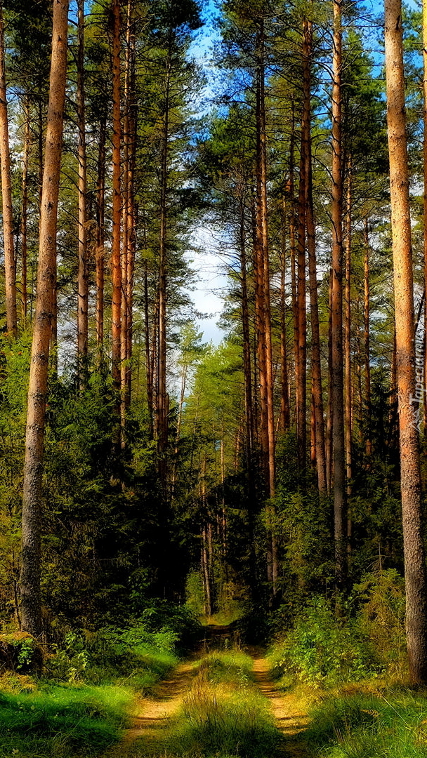 Edytor tapety: Wysokie drzewa przy leśnej drodze