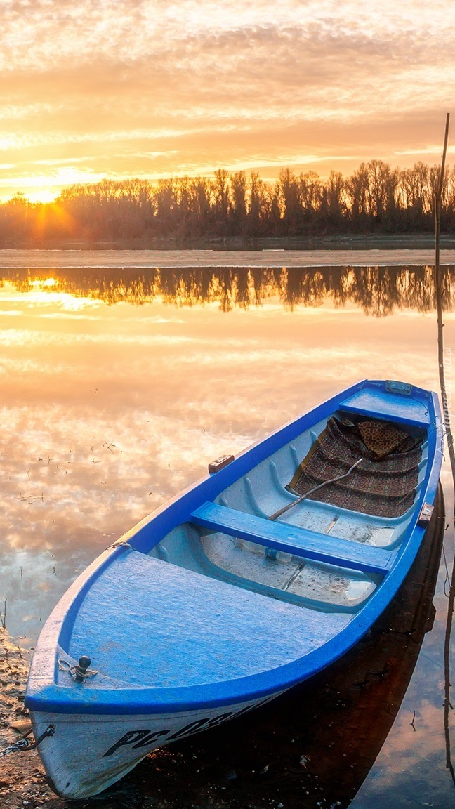 Edytor tapety: Łódka na brzegu jeziora