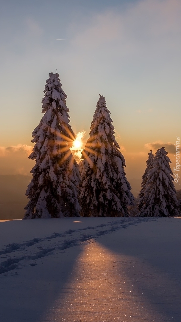 Edytor tapety: Ośnieżone świerki w słońcu