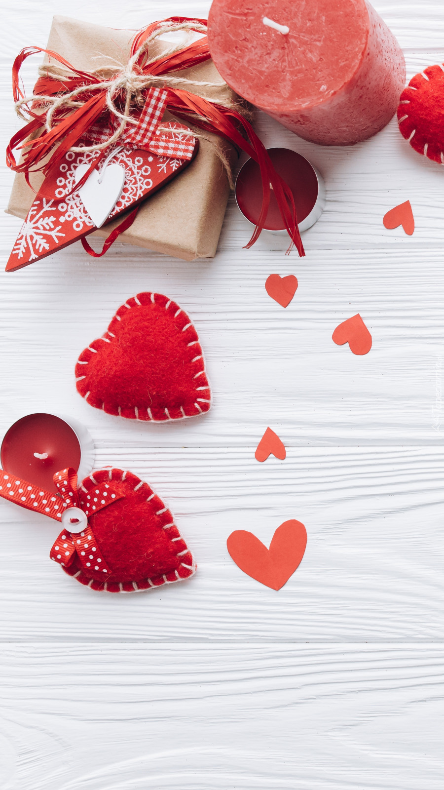 Edytor tapety: Świeca i prezent na deskach