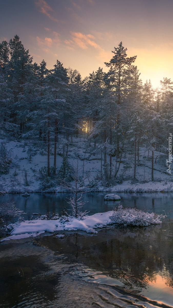 Edytor tapety: Ośnieżone drzewa nad jeziorem