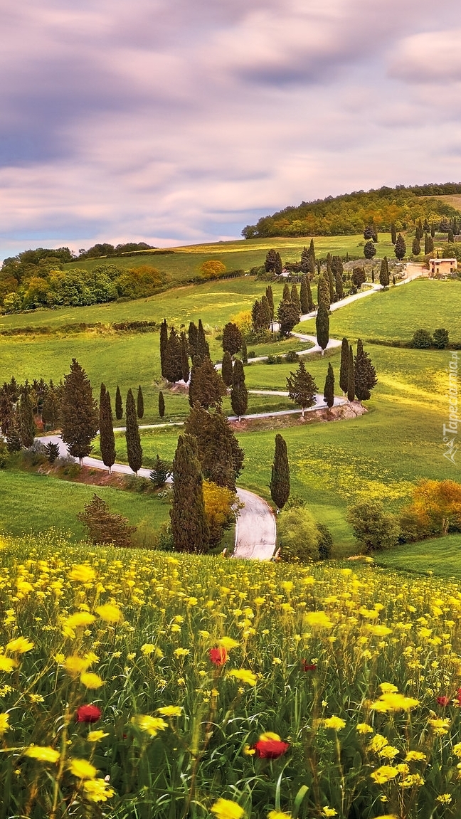Edytor tapety: Cyprysy przy krętej drodze