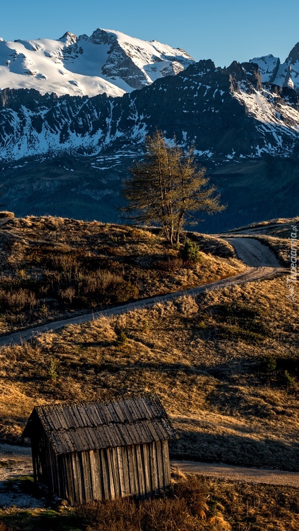 Edytor tapety: Drewniana szopa przy drodze