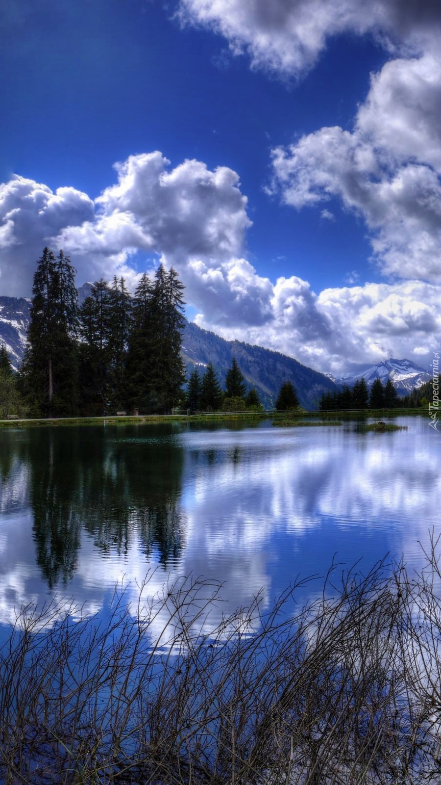 Edytor tapety: Letnie niebo odbite w jeziorze