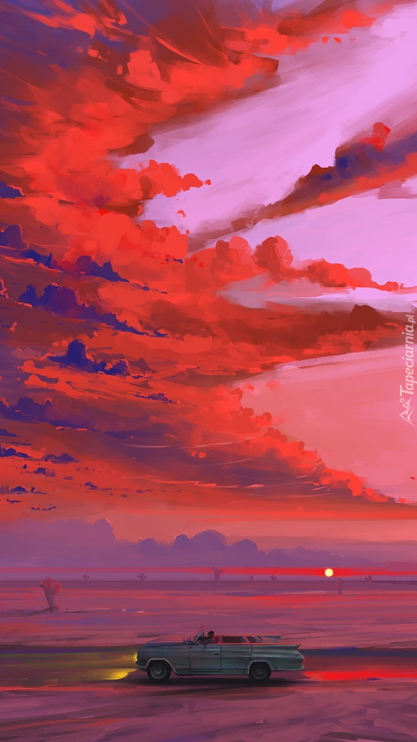Edytor tapety: Samochód na pustyni w grafice