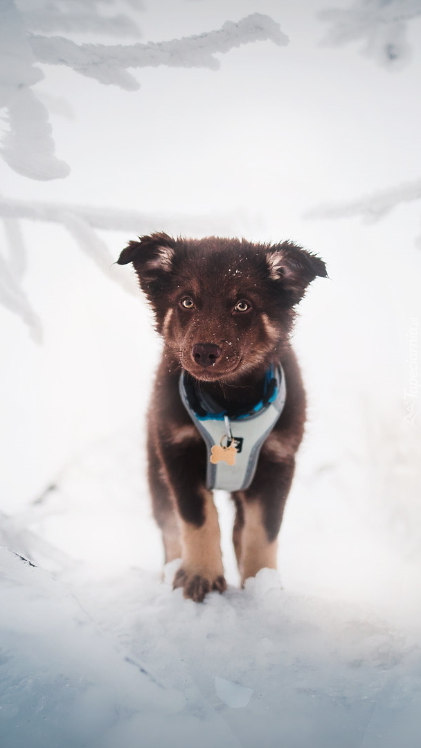 Edytor tapety: Szczeniak na śniegu