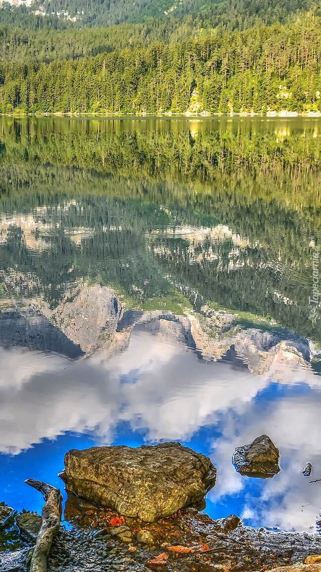 Edytor tapety: Zielone drzewa nad jeziorem
