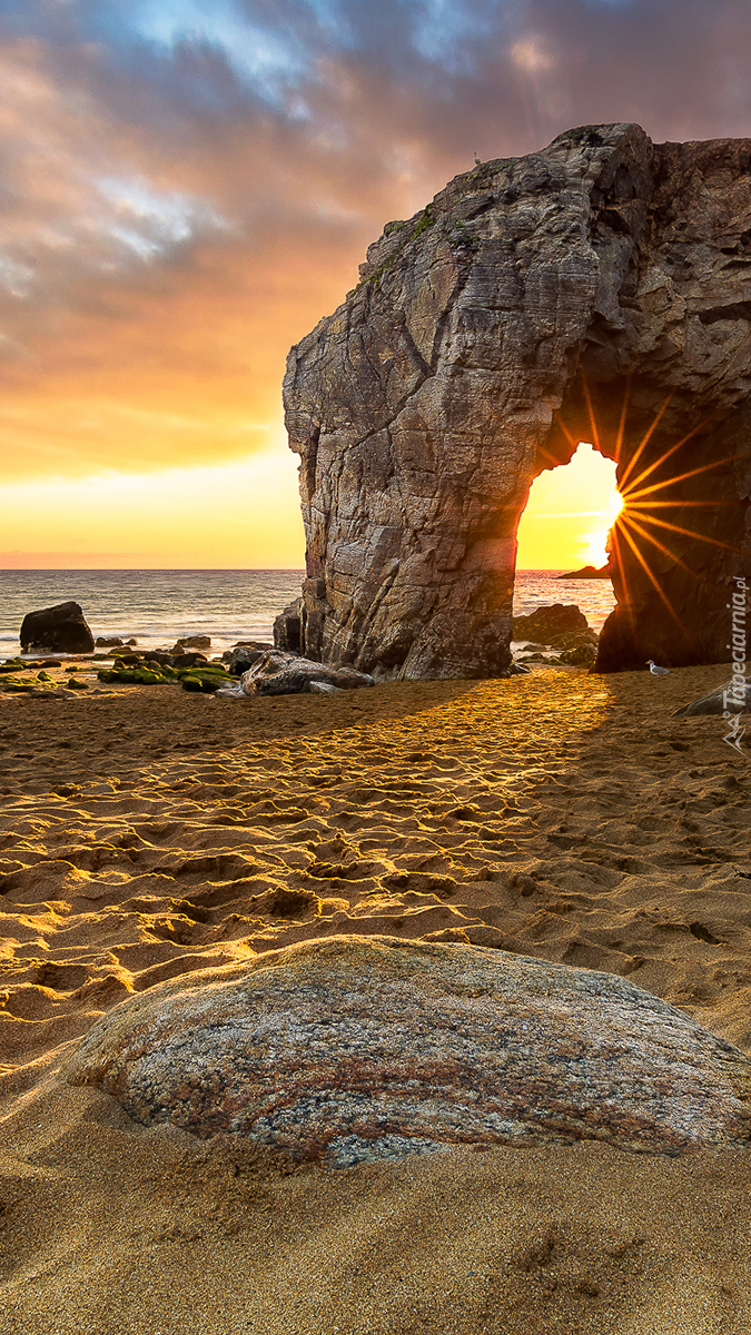 Edytor tapety: Słońce zagląda przez skalne okienko