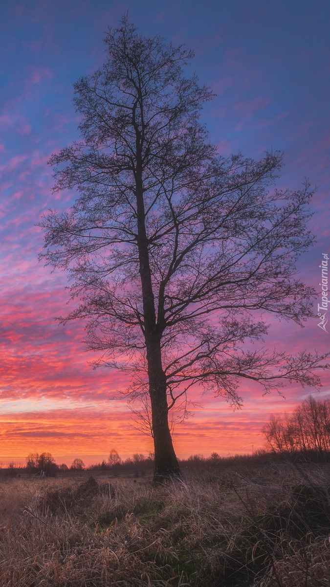 Edytor tapety: Drzewo na tle wschodzącego słońca